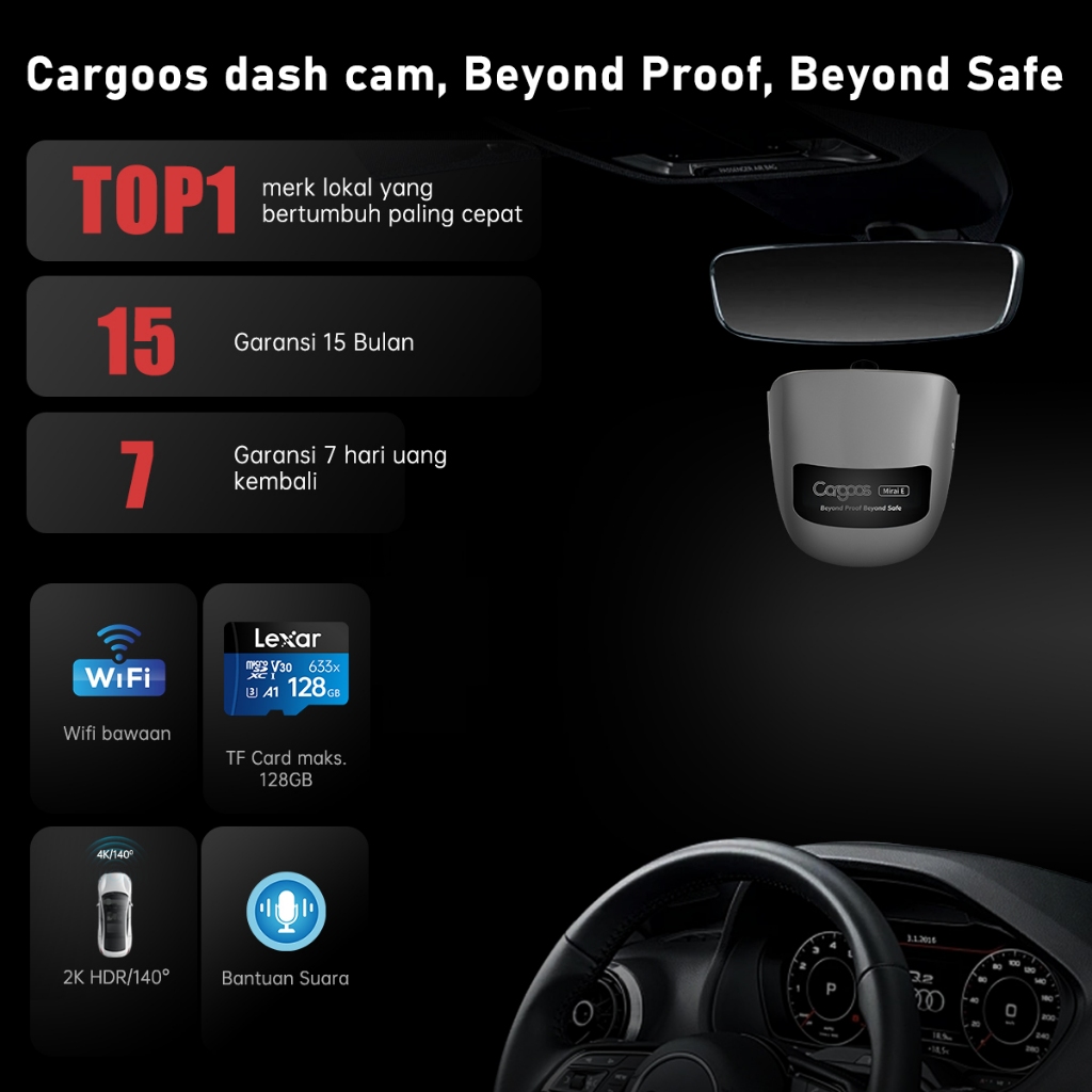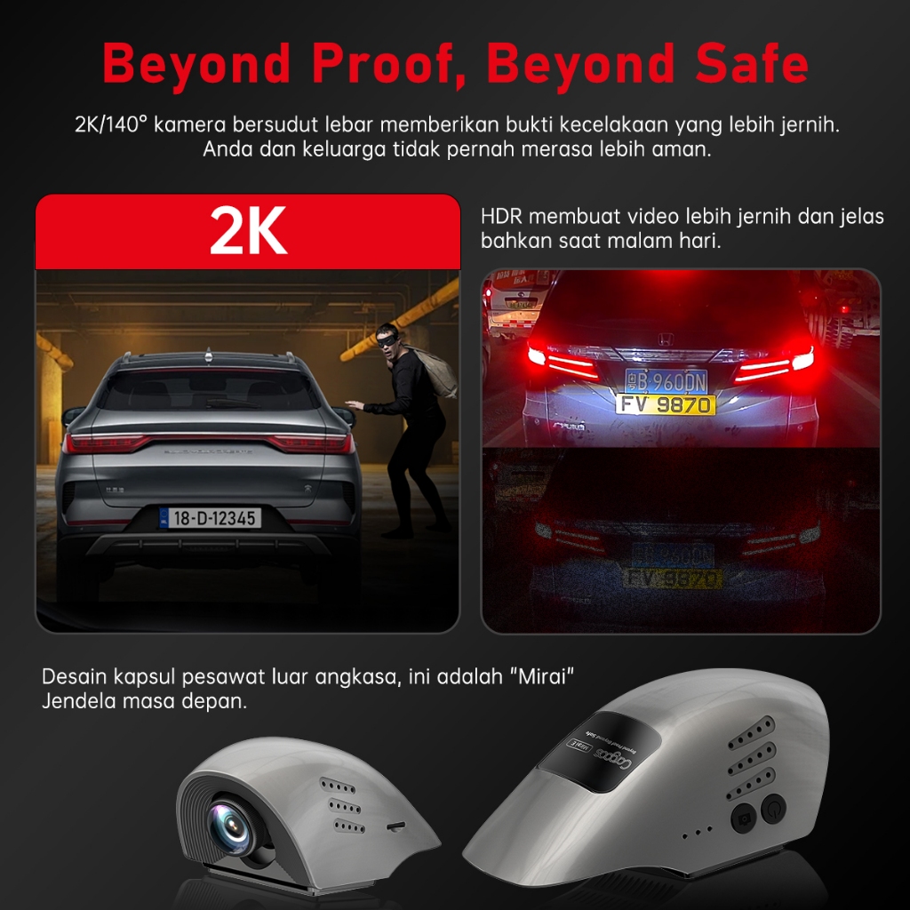 Cargoos Mirai E Dashcam 2K 1440P WiFi Kamera Mobil Sudut Lebar 140° G-Sensor