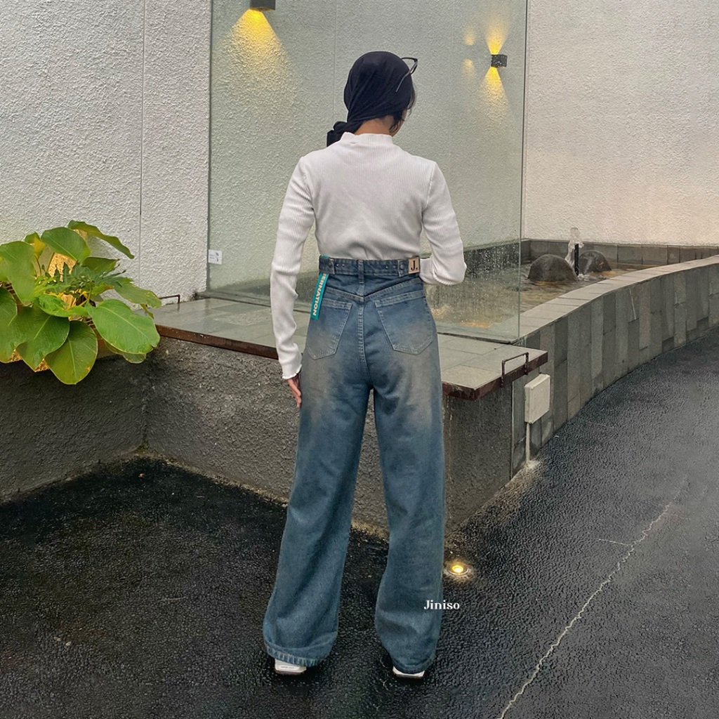 Jiniso - Highwaist Adjustable Super Baggy Jeans 880 Hibernation