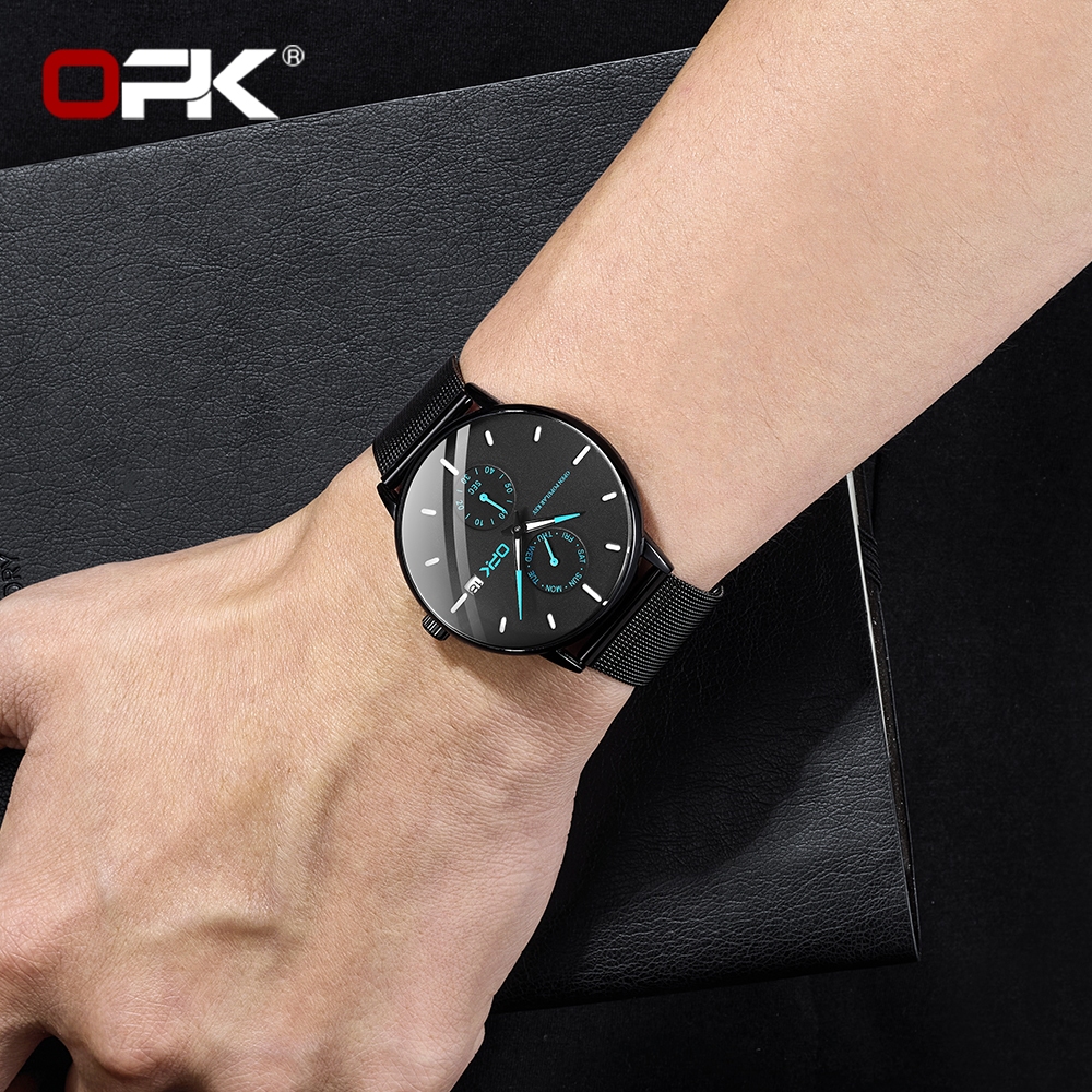 OPK Jam Tangan Pria Anti Air Original Unik Terbaru 2026 Bisnis Stainless Steel Luminous Kalender Analog Fashion Men Watc