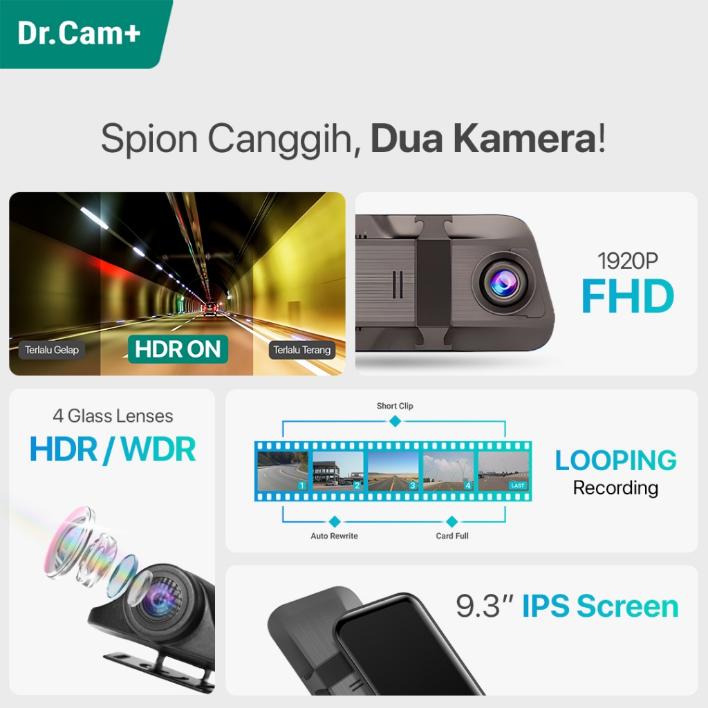 DR.Cam+ C10 WIFI Alpha Dashcam Spion DVR Mobil 9.3" - Streaming Rear View Mirror