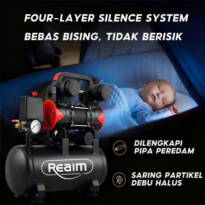 REAIM Kompresor Angin Listrik 10L/36L Kompresor mini Oil Free