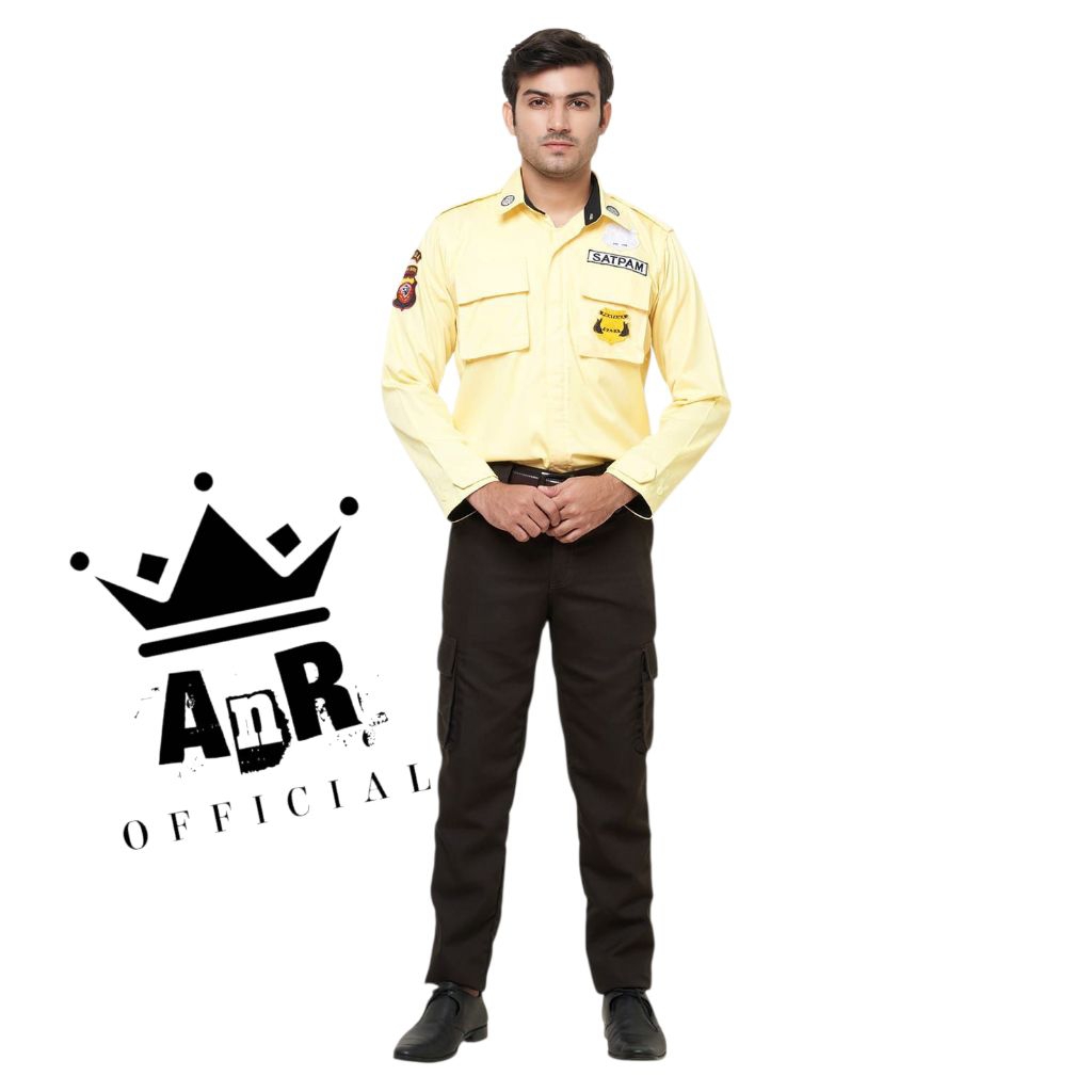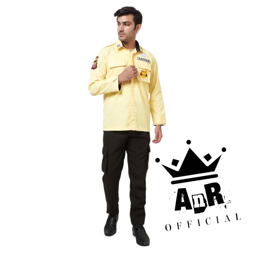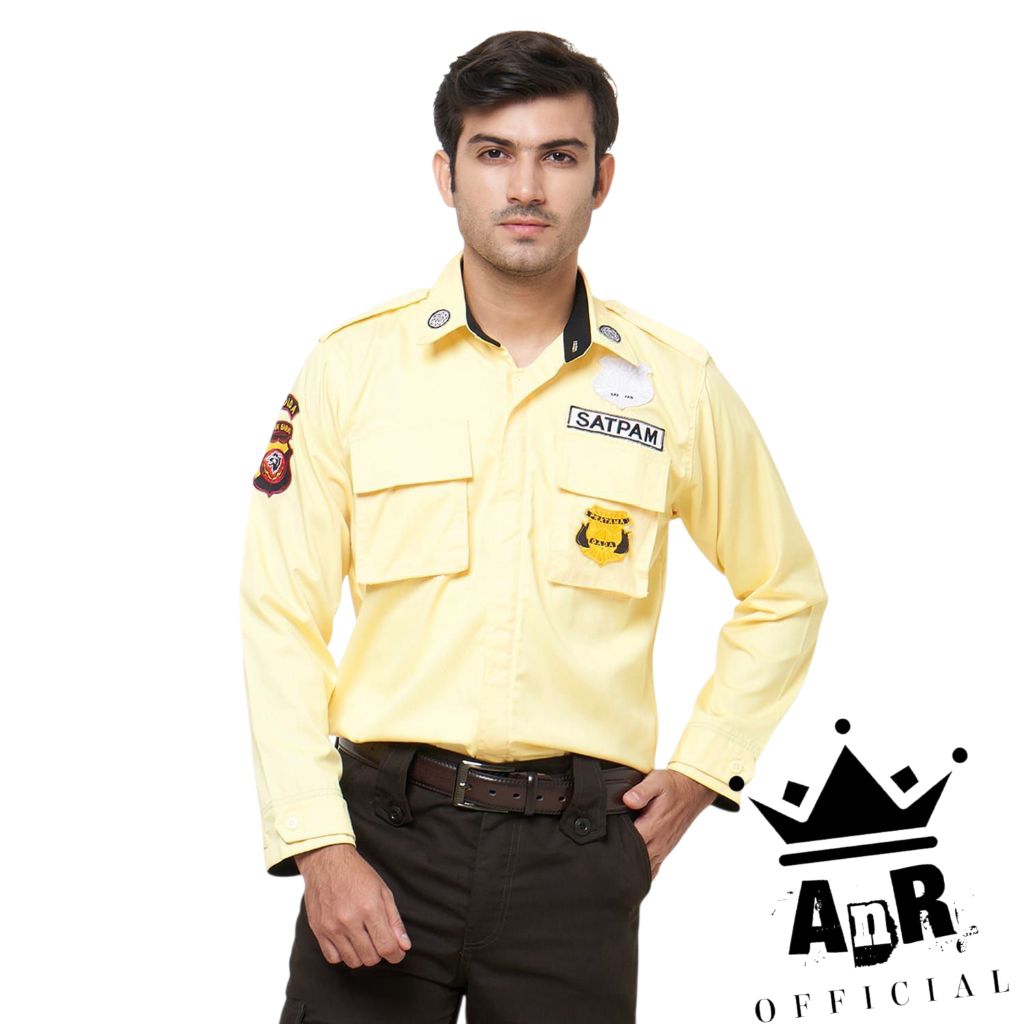 Seragam Security Satpam PDL Cream Lengan Panjang Kerah Hitam Resleting Kancing Bahan American Drill