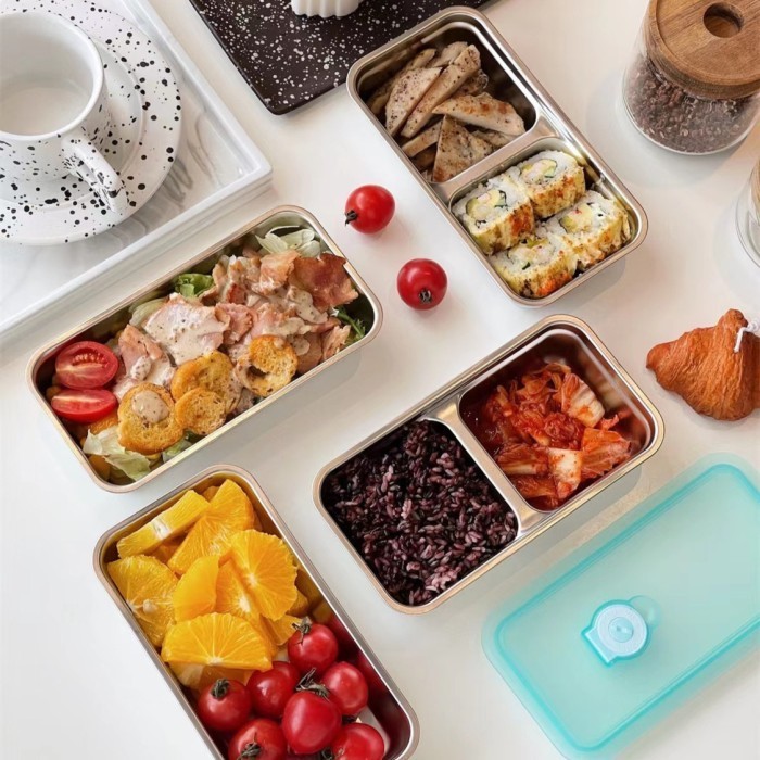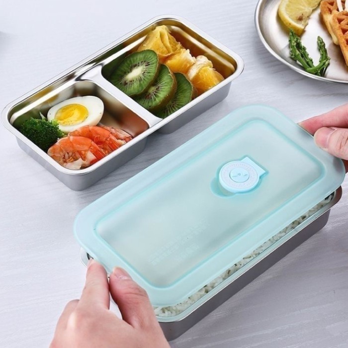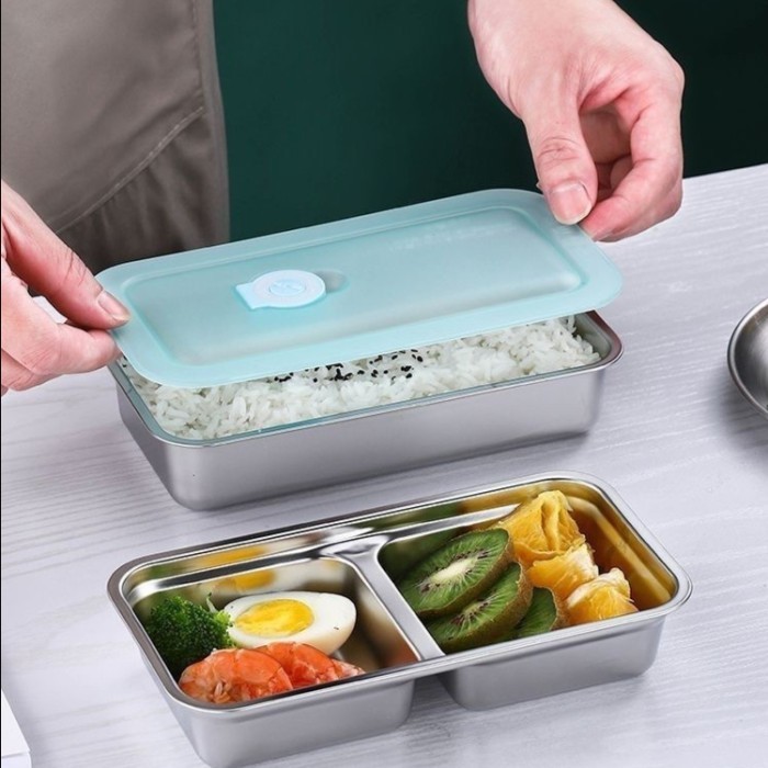 kotak makanan lunch box stainless sus304 tebal 2 sekat tutup anti tumpah seal katup food grade 10 x 20cm Murah Gratis On