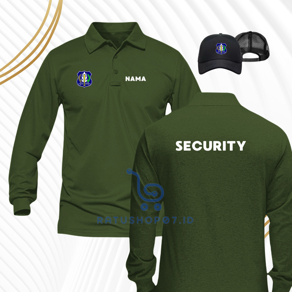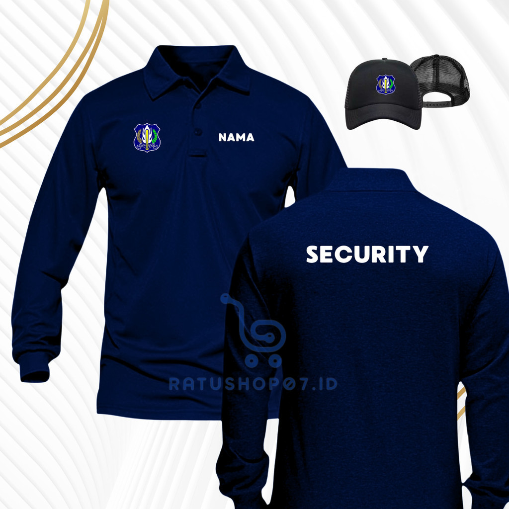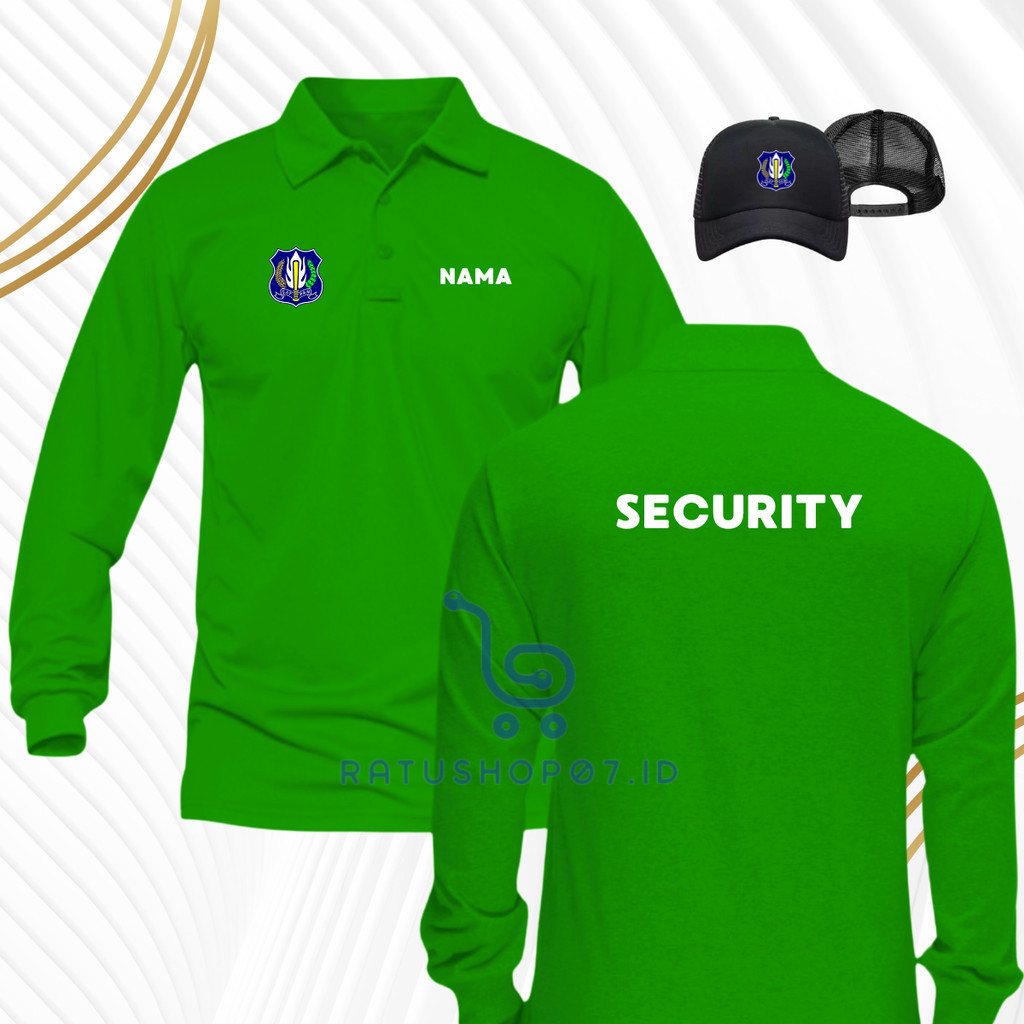 Bonus Topi Baju Kaos Poloshirt Lengan Panjang Seragam Satpam Sablonan Logo SECURITY Simpel Atasan Model Polotshirt Unise