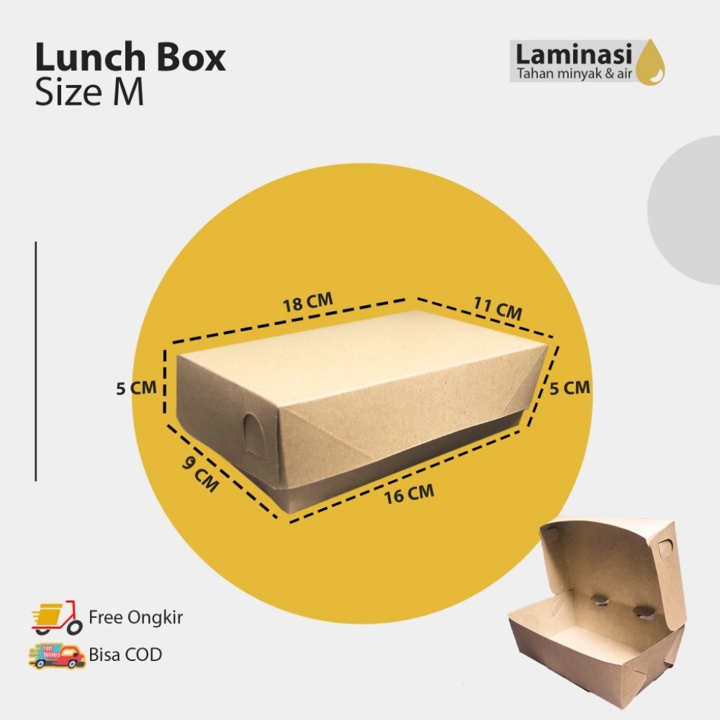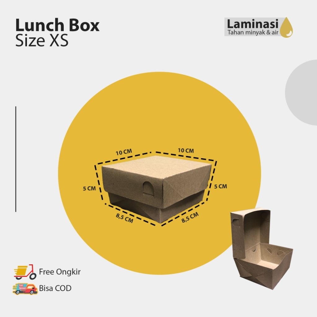 Lunch Box Paper|Isi 50pcs|Laminasi|Ukuran L/M/S/XS|Lunch Box|Dus Makanan Murah Gratis Ongkir