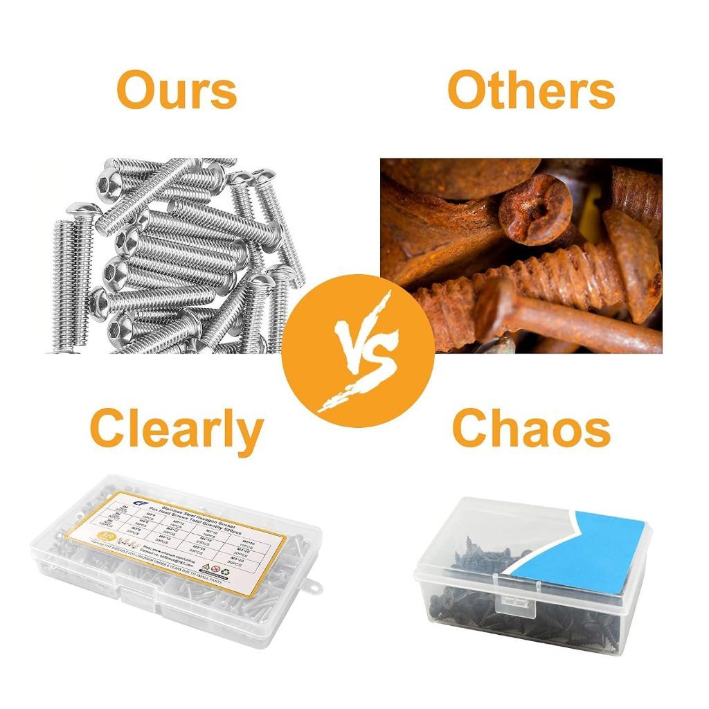 Baut Mur Washer Ring Set Bulat Hex M2 M3 M4 Paket 1080 pcs Kunci L Stainless SS 304 Hex Head Socket Screw Nut Washer