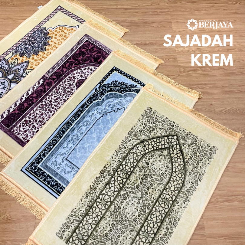 Sajadah KREM Turki Tebal Putih Cream Premium Anti Slip Gratis Kartu Ucapan
