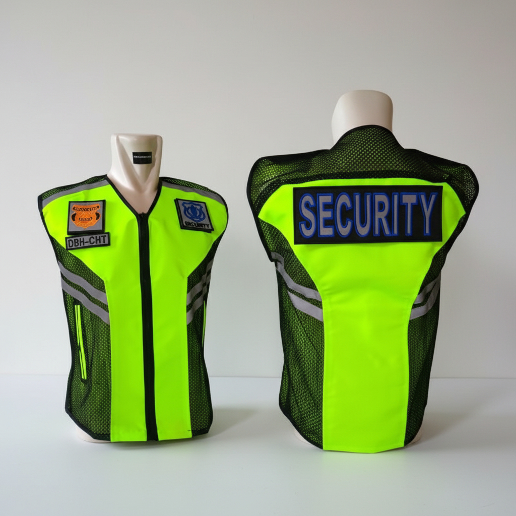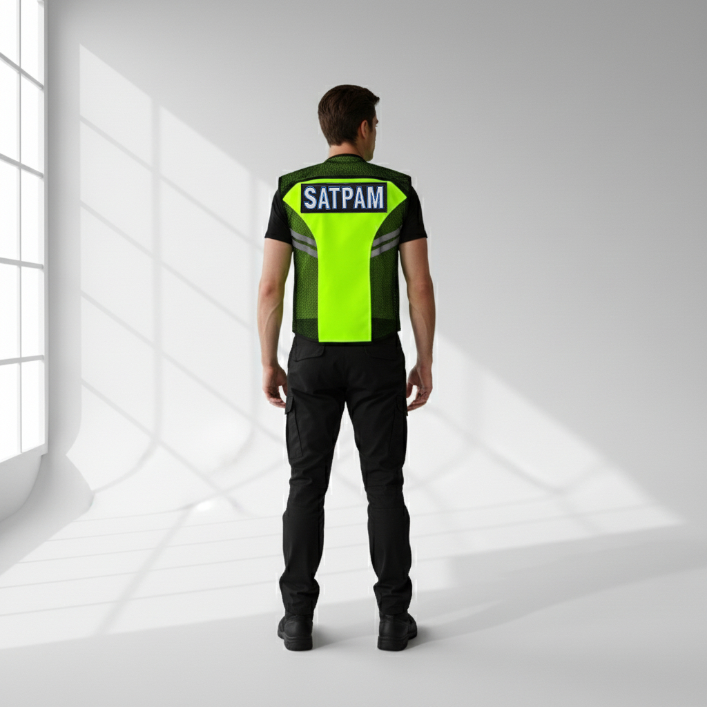 Gratis Bordir Nama - Rompi Security dan rompi Satpam Hitam Stabilo Bahan Taslan Premium Anti Air