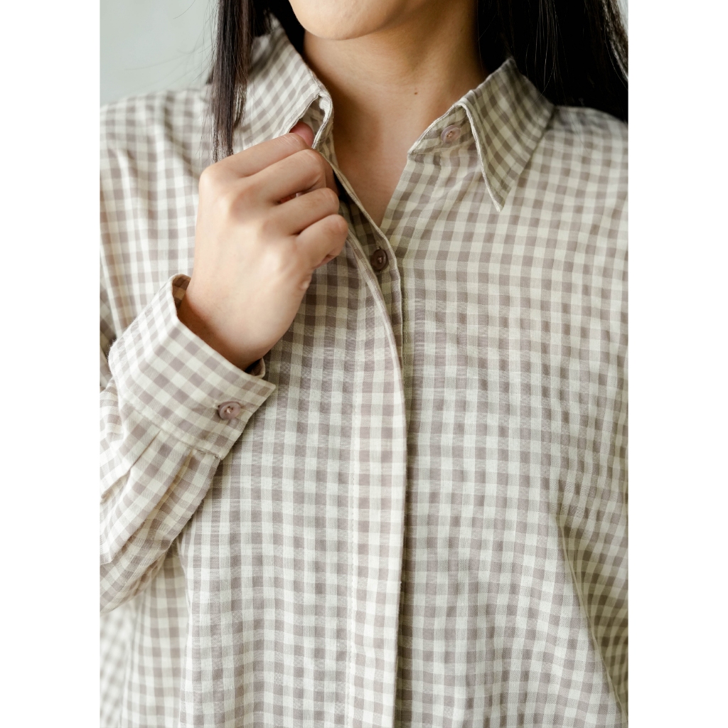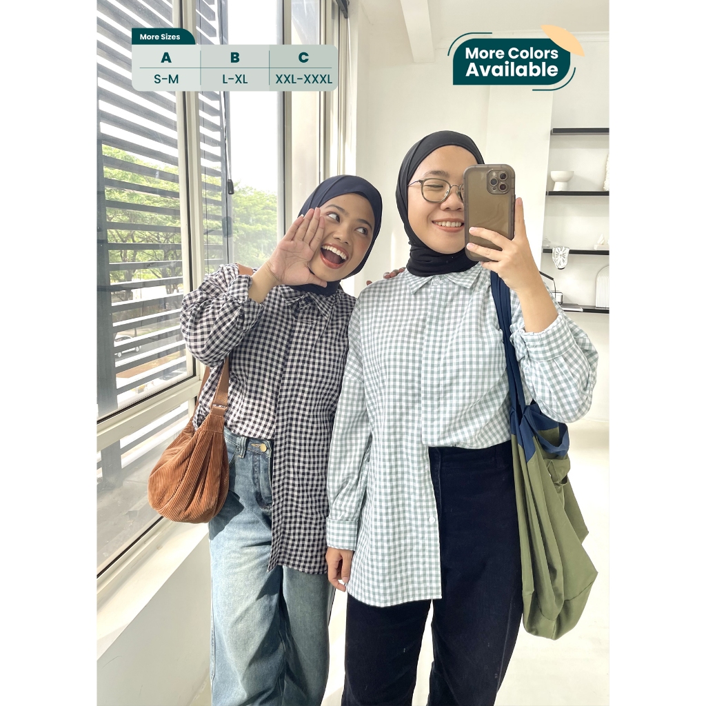 Ixora Bora Oversized Shirt - Kemeja Wanita Oversize Lengan Panjang Kotak-Kotak