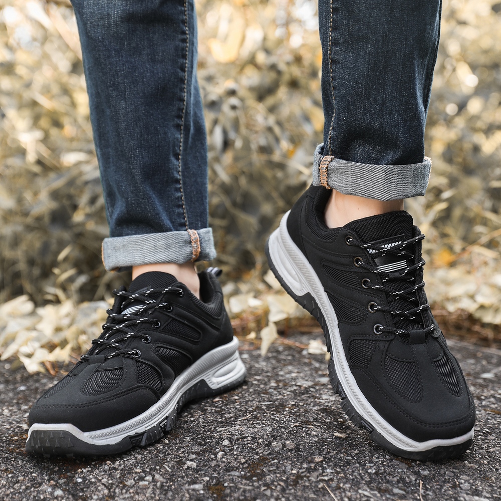 TIMUGA Sepatu Pria Hitam Sepatu Gunung Sneakers Outdoor Hiking Sepatu Jogging Cowok Sport MR710
