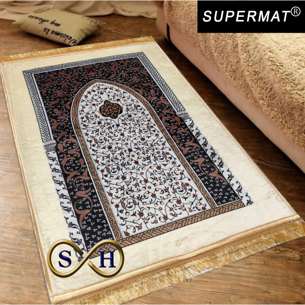 SUPERMAT - Sajadah Busa Turki Rumbai Warna Gold tebal 10 mm
