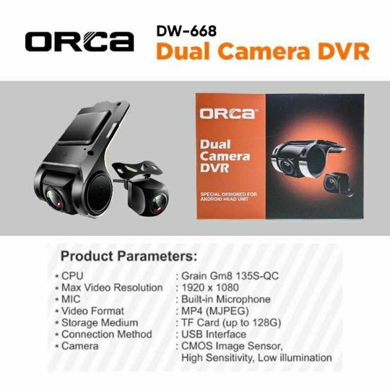 Kamera DVR Mobil ORCA DW-668 Dashcam Dash Cam Dual Camera Rekam Universal AHD Front & Rear View Depan Dan Belakang DW668