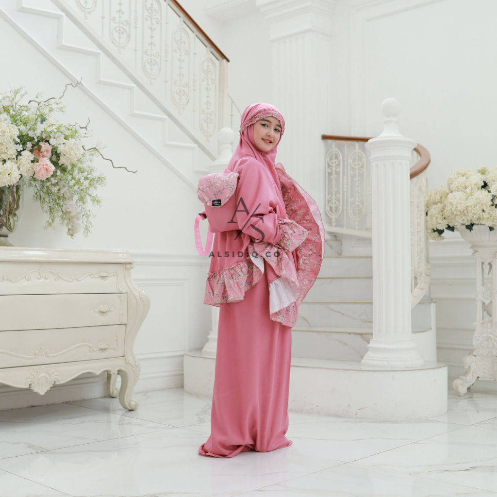 Mukena Anak Katun Tas Ransel + Sejadah 2in1 Resleting Premium Usia 2 - 15 Tahun