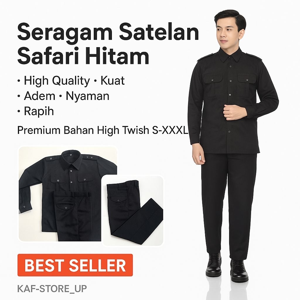 - Setelan Seragam Security Safari Hitam – Baju Satpam Premium High Twish Tebal Adem KAF-STORE_UP