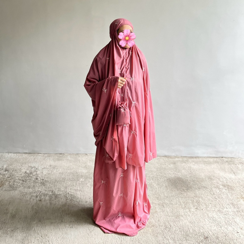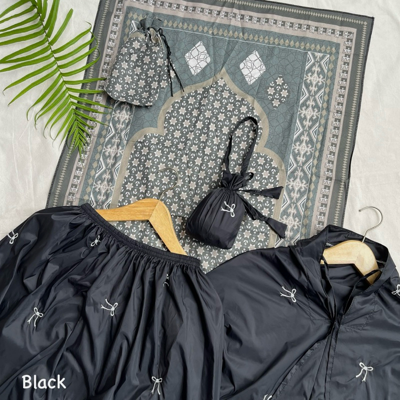 Full Set Mukena Travel Coquette Bordir Pita Parasut Korea Premium 2in1 + Sajadah Traveling Kashmeer