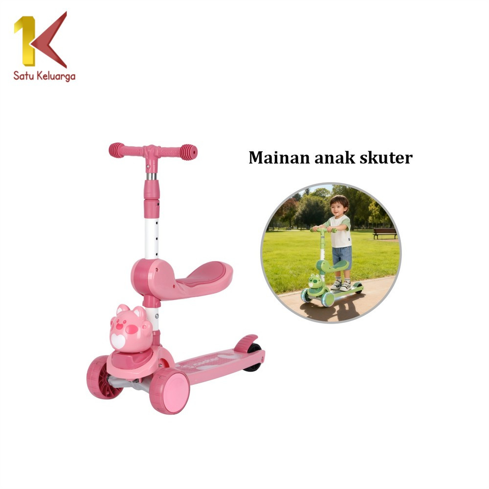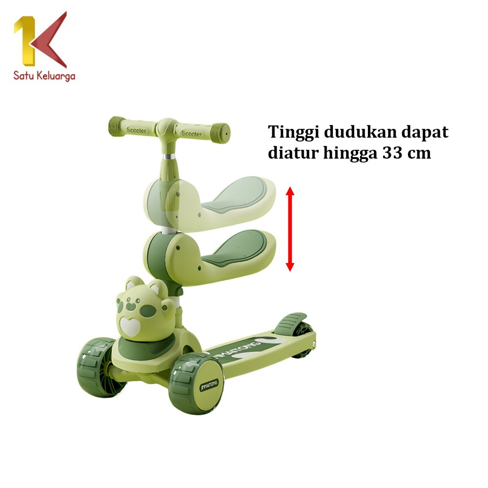 Satu Keluarga Mainan Anak Skuter Lipat 3 Roda M391 Sepeda Duduk 2in1 Ada Musik Lagu Lampu Karakter