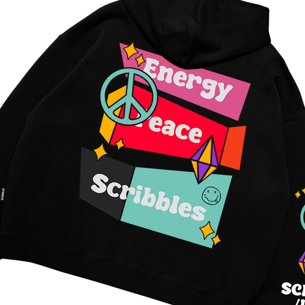 WorkoutxScribbles Sweater Hoodie Boxy 330GSM Energy Hitam