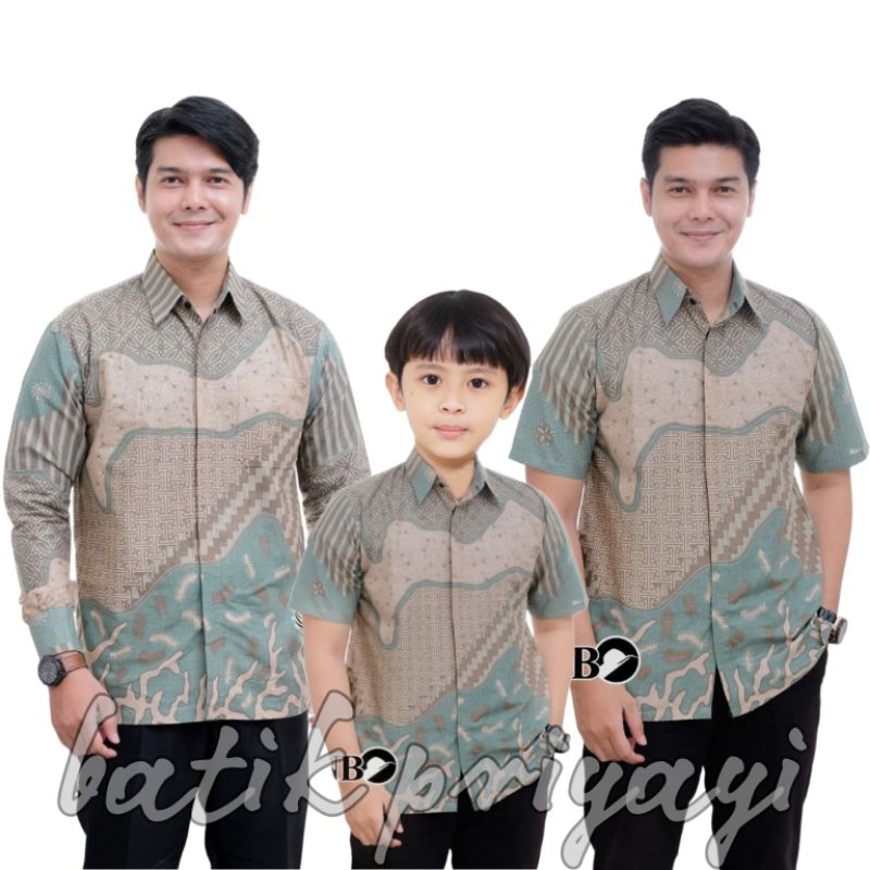 Kemeja Batik Anak Laki laki Warna Hijau Sage Green Batik Pria Dewasa Couple Batik Ayah dan Anak Laki Laki