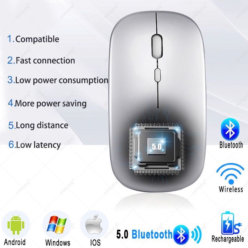 FLASH SALE MOUSE BLUETHOOTH WIRELESS 2 in 1 RECHARGE KLIK SILENT MACARON MOUSE