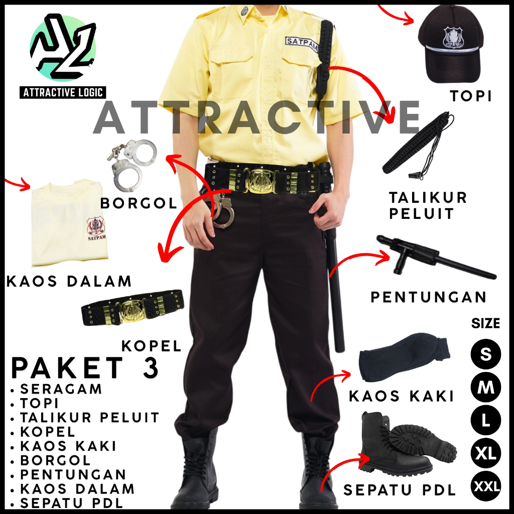 GROSIR PAKET LENGKAP SERAGAM SATPAM SECURITY PDH LENGAN PENDEK - ATTRACTIVE