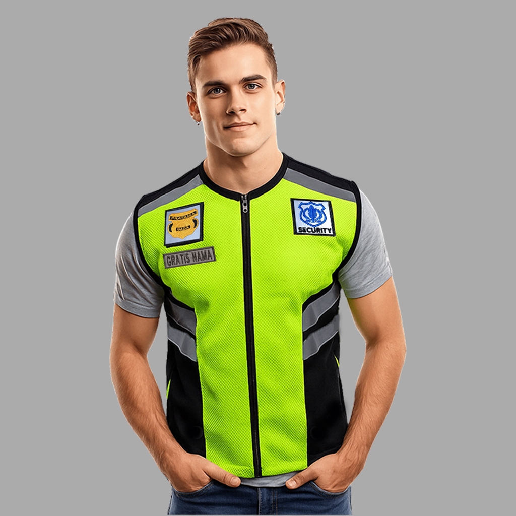Gratis Nama - Rompi Satpam Security DoubleMesh Tebal Stabilo Iga Hitam Terbaru