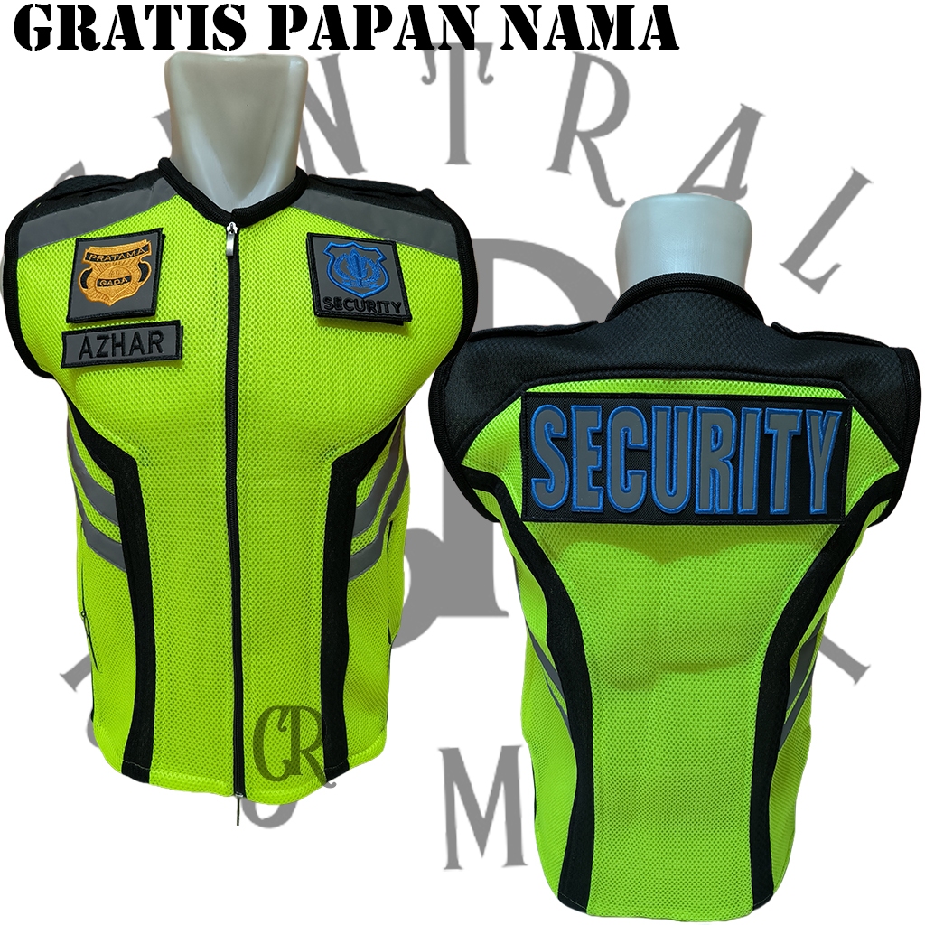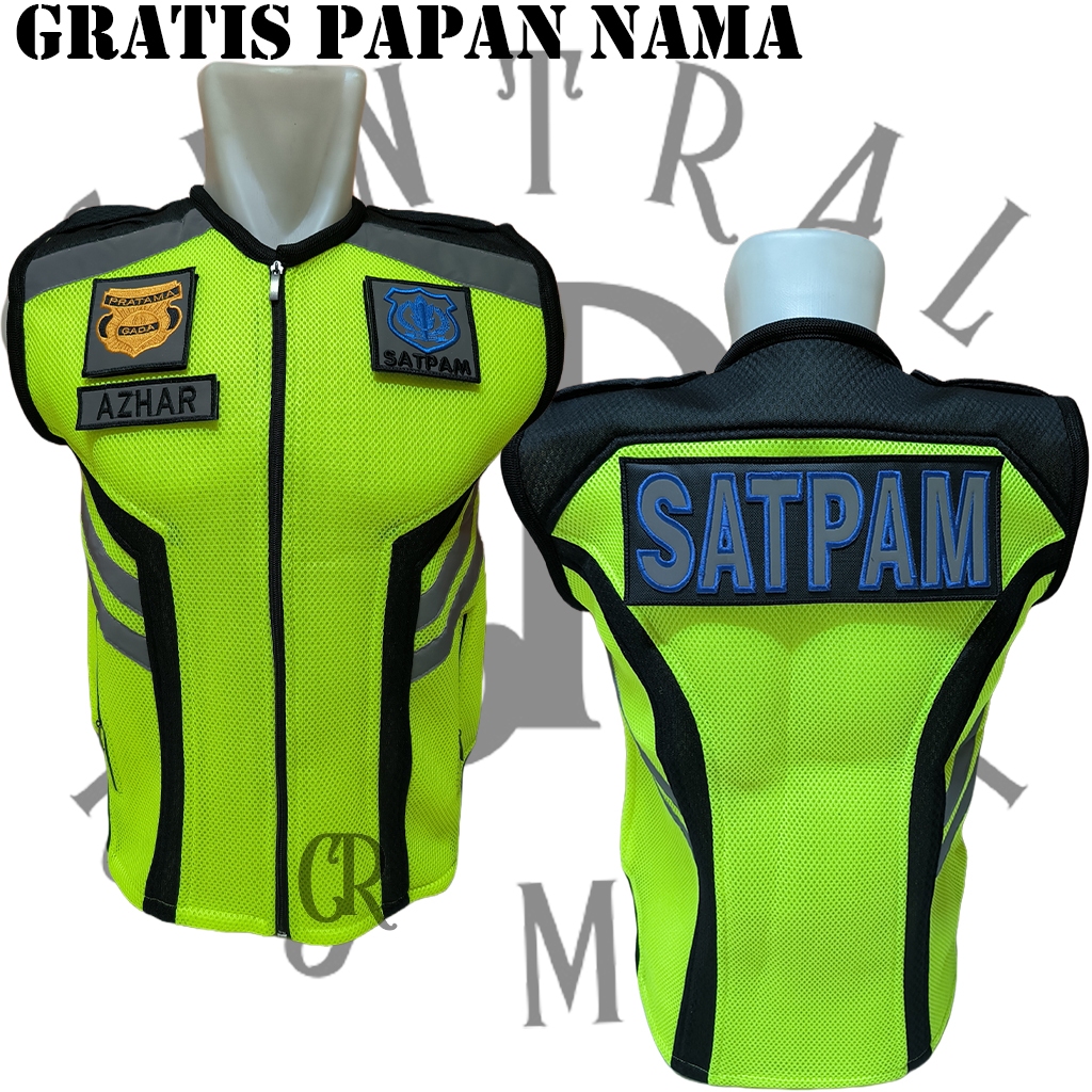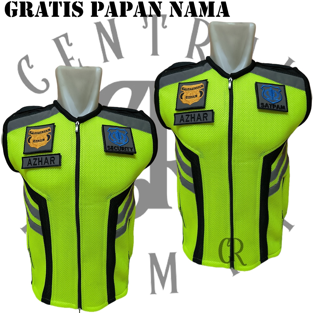 Rompi Jala Tebal Security Satpam Hijau Stabilo Plat Hitam