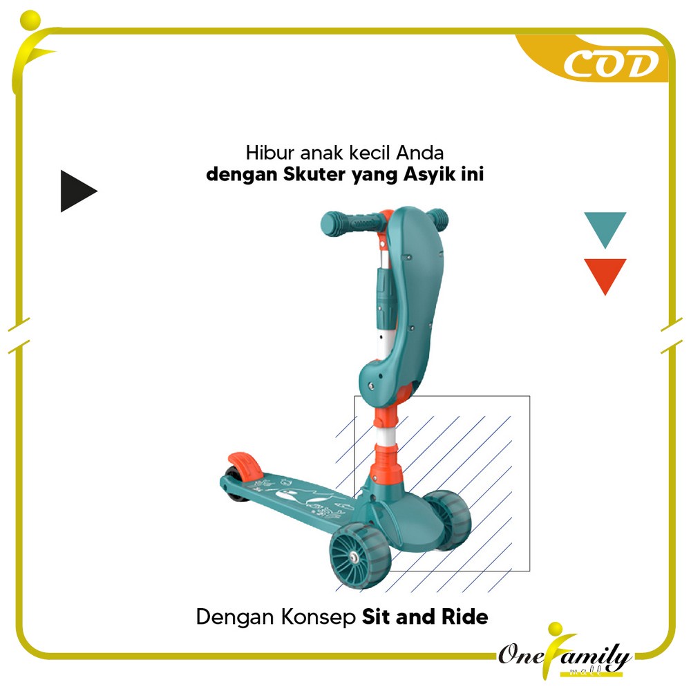 ONE-M290 Mainan Anak Skuter Otoped Sepeda Duduk 3 Roda 2in1 Ada Musik Lagu Lampu Scooter Anak roda nyala