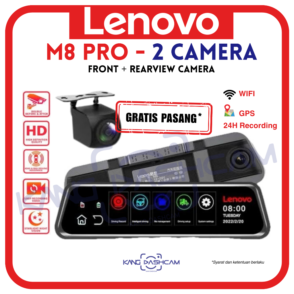 Lenovo M8 PRO 4K WiFi ADAS GPS E-Mirror Dashcam Kamera Mobil