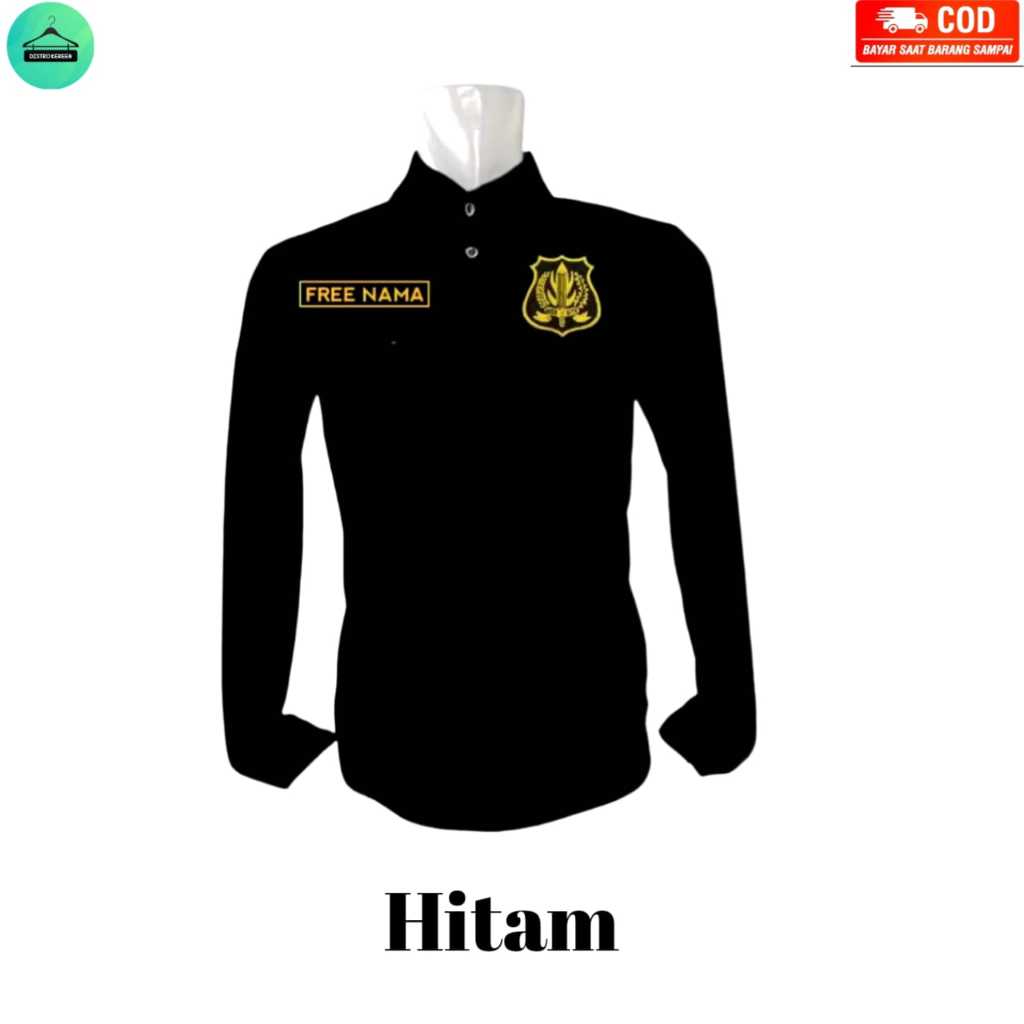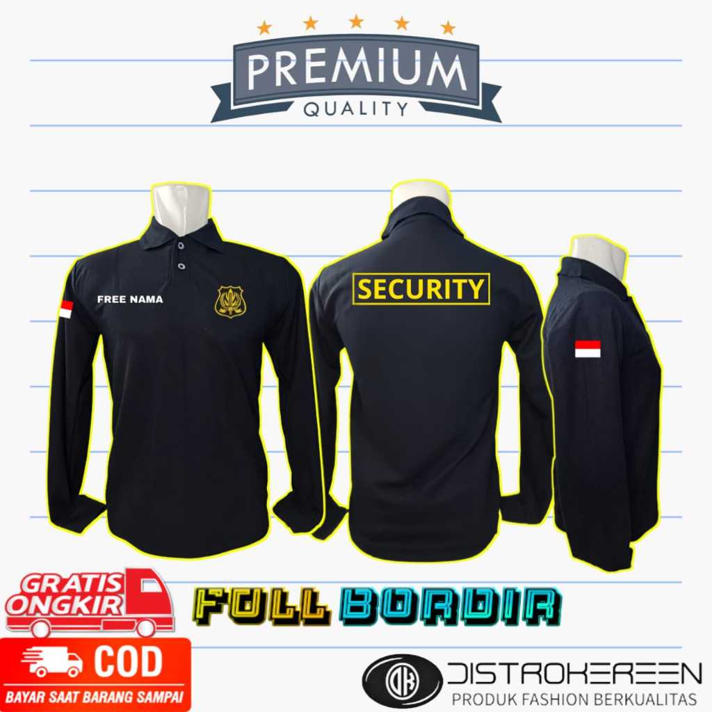 KAOS KERAH SECURITY LOGO KUNING FREE NAMA WARNA HITAM LENGAN PANJANG- FULL BORDIR
