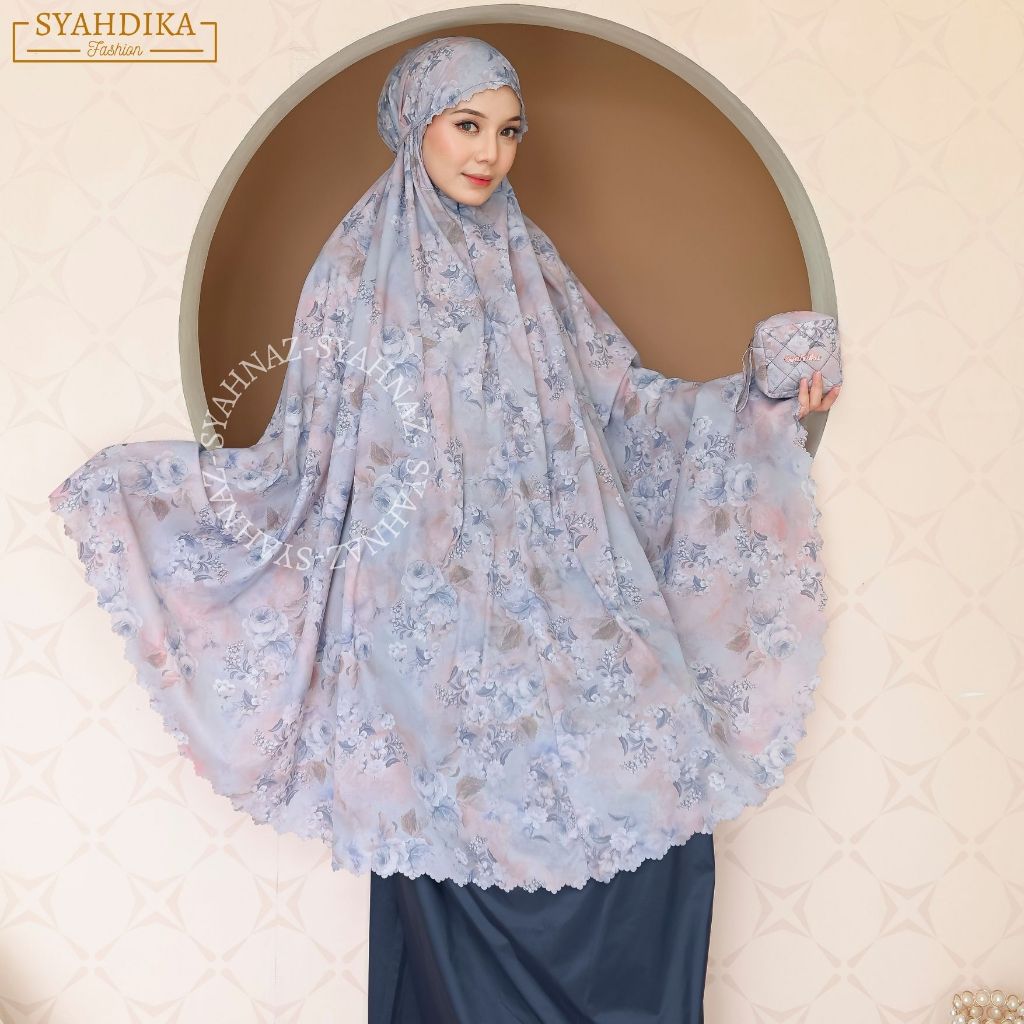 Syahdika - Mukena Travel Mini Parasut Premium Korea 2in1 Motif Rose Laser Cut Free Sejadah