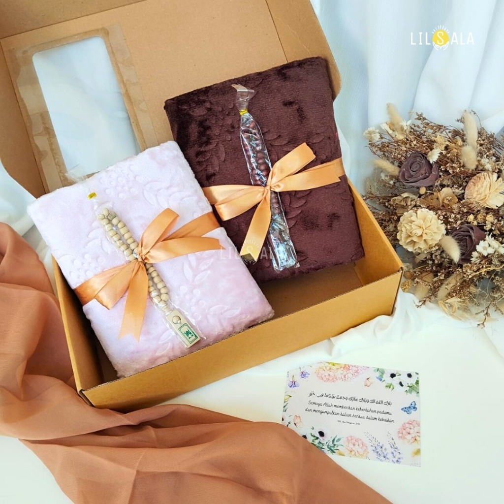 Hampers Sajadah Kubah Rafavel Couple Midi Embossed Premium Cantik Hadiah Wedding Kado Pernikahan