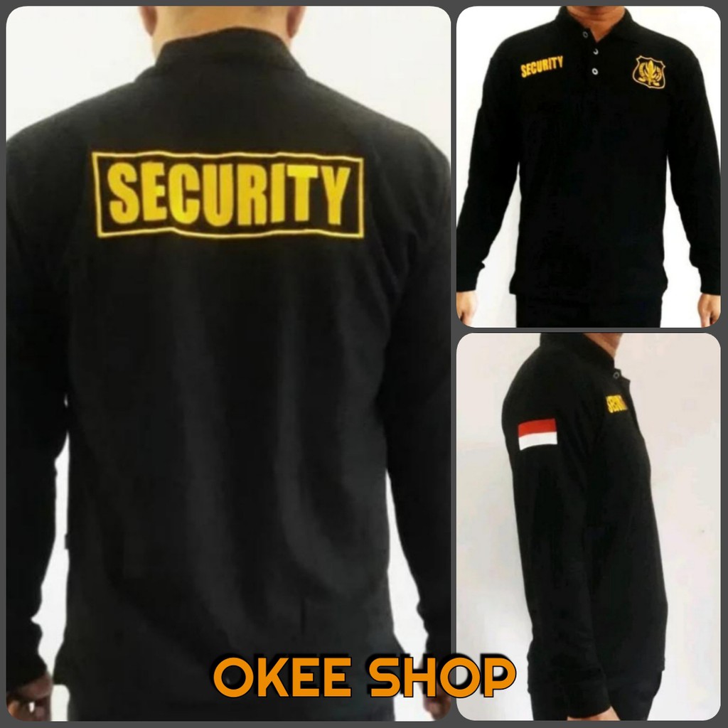 Baju Kaos Kerah Shirt Security Logo Kuning Hitam Lengan Panjang
