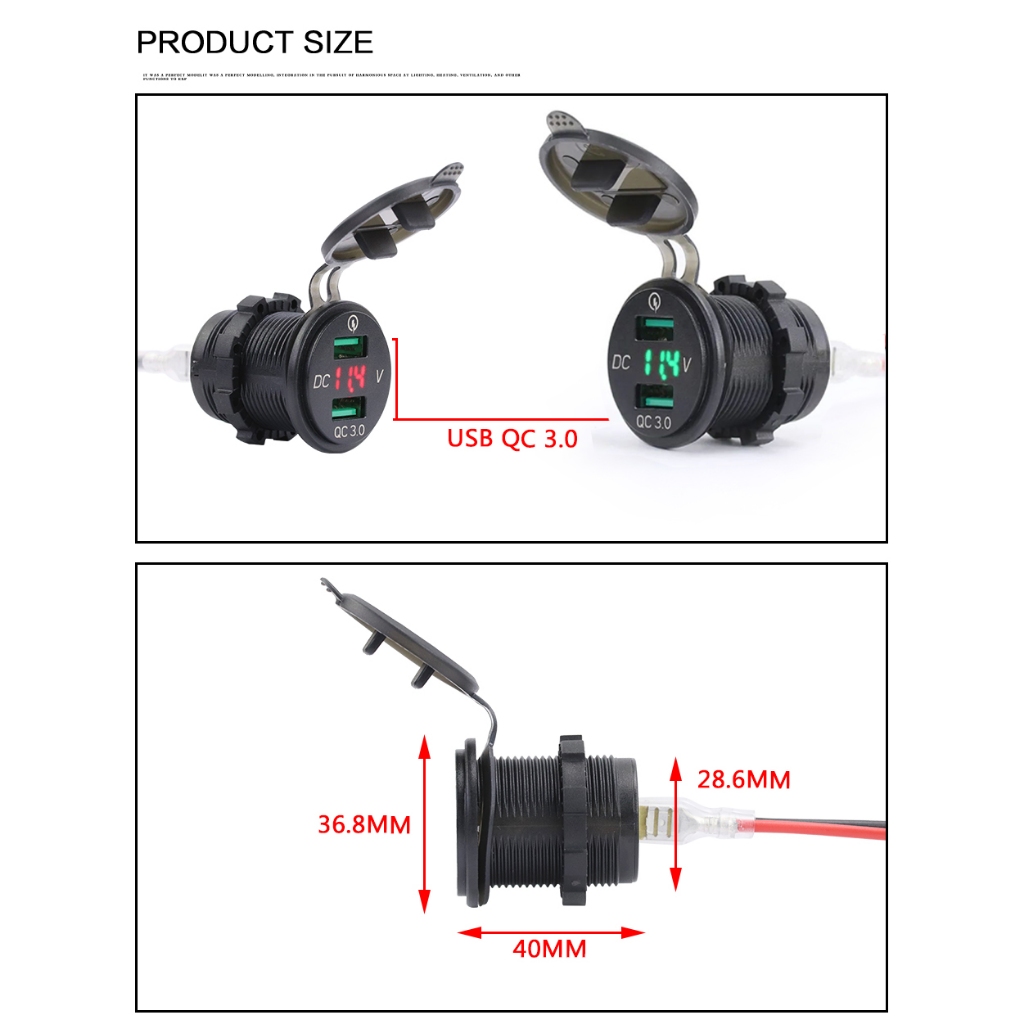 FLASH SALE Quick Charger QC30 12V Dual Port USB & Voltmeter Waterproof Mobil Motor