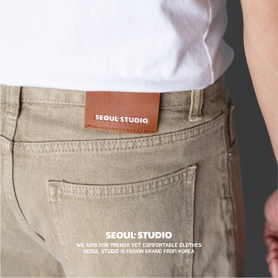 [SEOULSTUDIO] ITAEWON (Beige) Loose Fit Jeans | Pants Celana Denim Cowok Cewek Gombrong Baggy Y2k