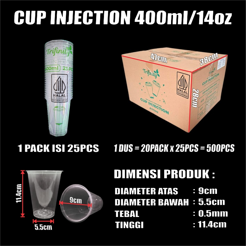 Trifinity Cup Injection HALAL Tebal 12oz 380ml 14oz 400ml 16oz 500ml 24oz 700ml Pac Tutup Sambng JSP Murah Gratis Ongkir