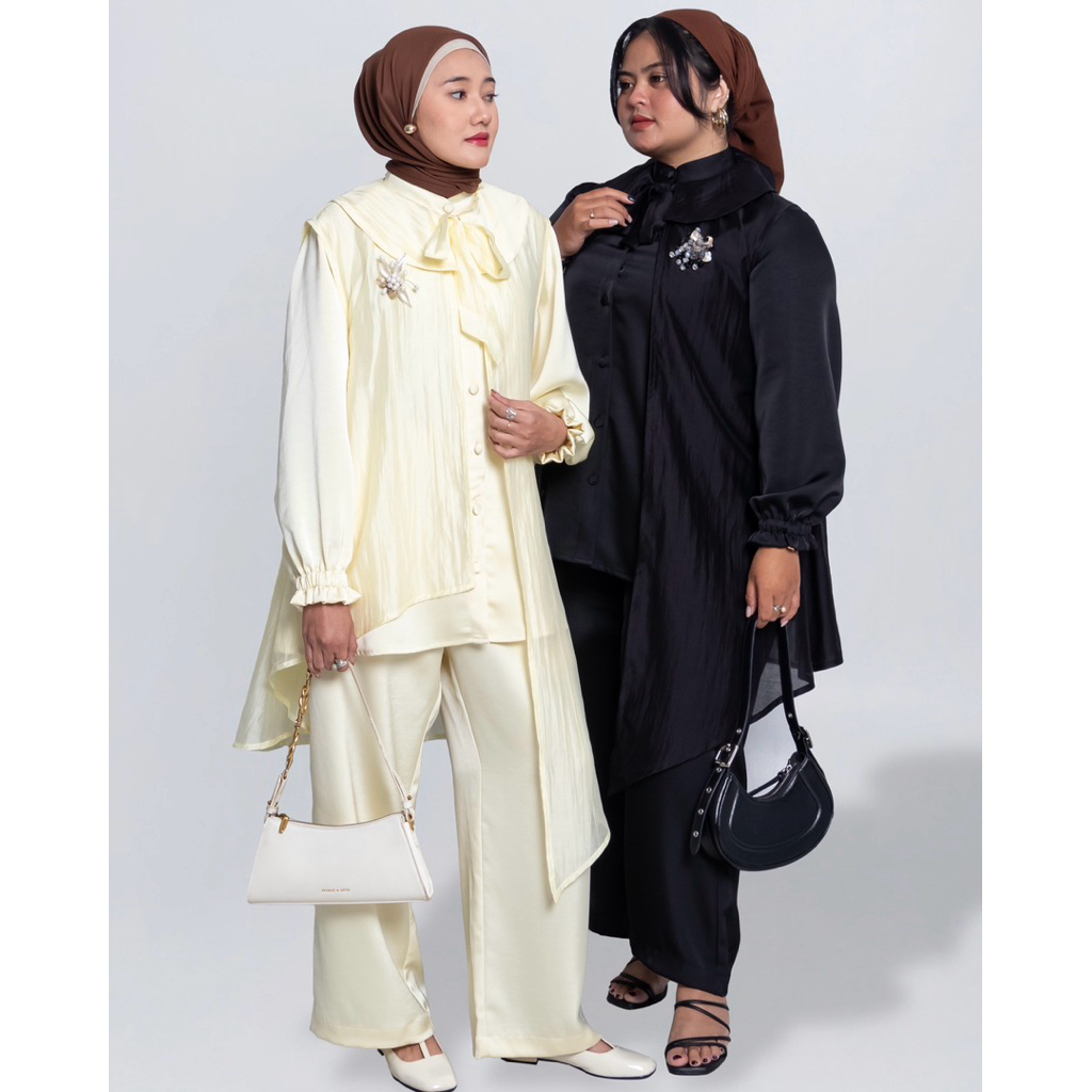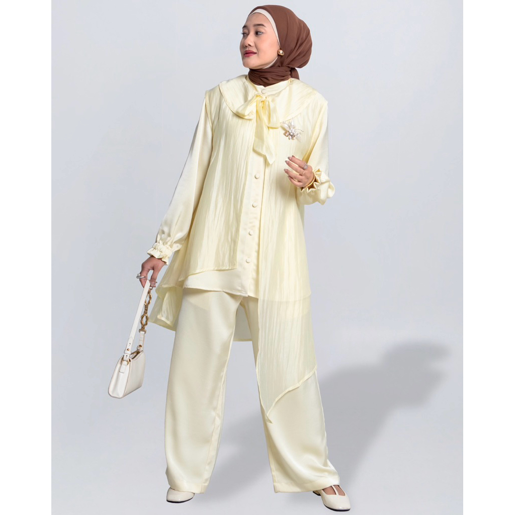 VLOWY - Pamela Set - Set Wanita ( Matterial Blouse & Pants Silk premium dan Matterial Outer Perpaduan Tencel & Nylon ️)