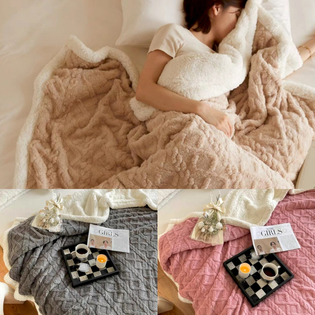 Selimut Bulu Domba 2 Sisi / Selimut Waffle Ukuran 180X200Cm Tebal Emboss Anti Alergi New Arrival