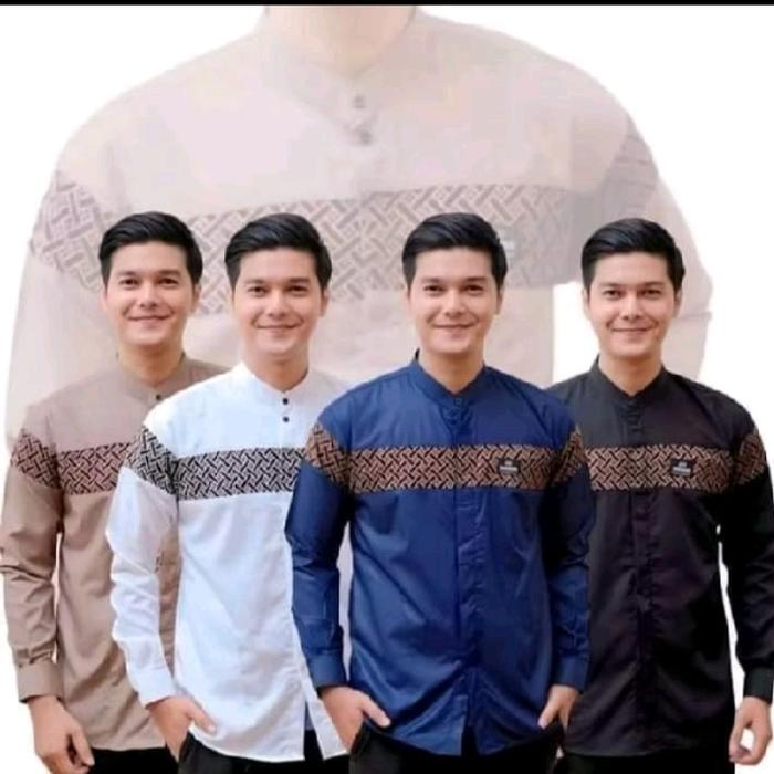 Baju Muslim Pria Koko Kurta Kobota Lengan Panjang Dewasa Katun Nyaman - kobota lengan panjang (M), navy