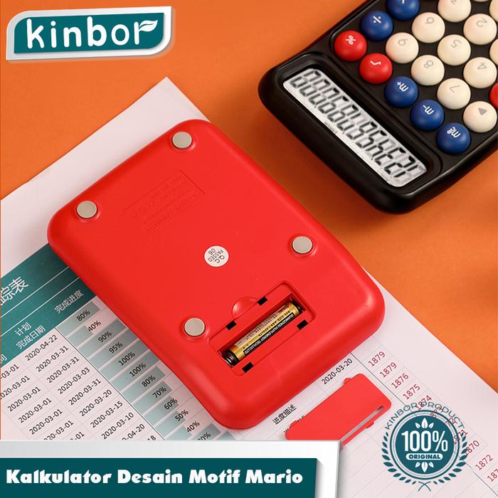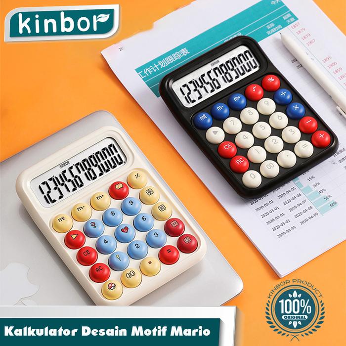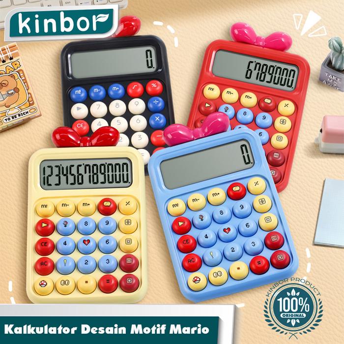 Kinbor Kalkulator Layar Besar 12 Digit Warna Mario dengan Tombol Bulat dan Portabel Baterai Operated