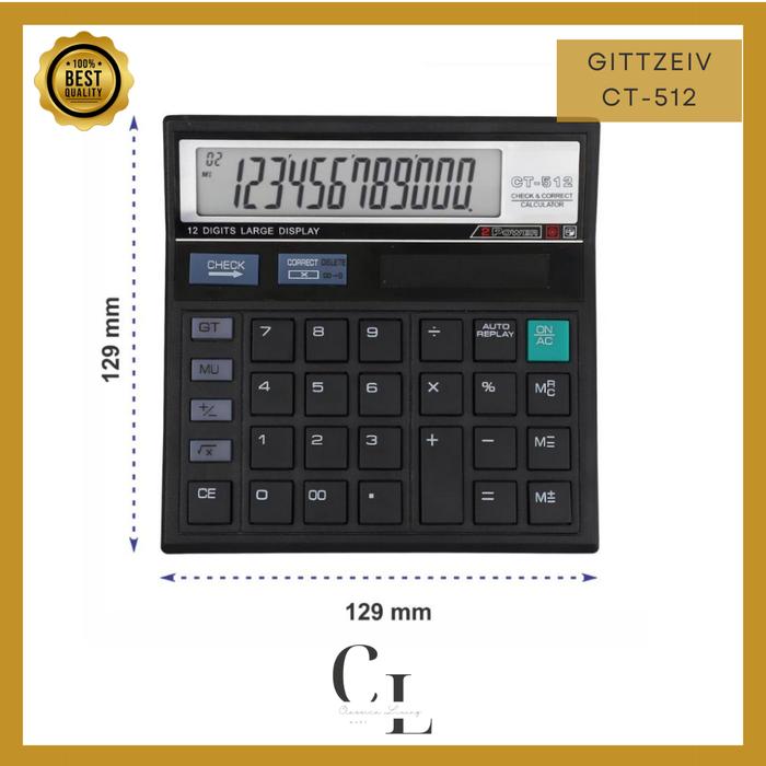 CLM Kalkulator CT-512 CT-868N 12 Digit Calculator Check Dual 2 Power Alat Hitam Elektronik