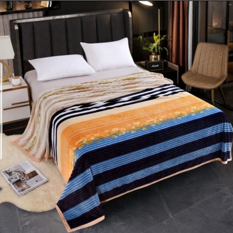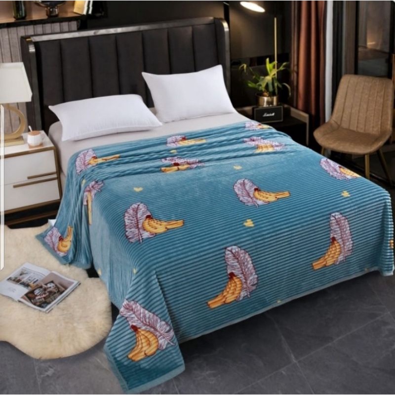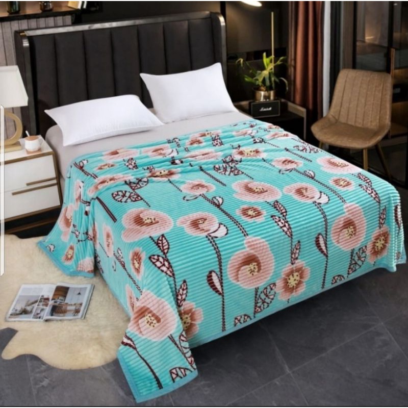 Selimut Bulu Flanel Lembut Tebal Import Motif Luxury Kualitas Oke Uk.180200 Embos Motif New