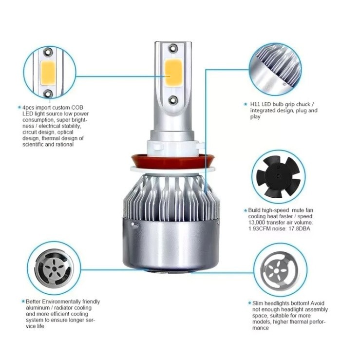 FLASH SALE VRtec Lampu Led C6 H11 H8 COB Kuning 2 Pcs Fog Lamp Mobil Super Terang