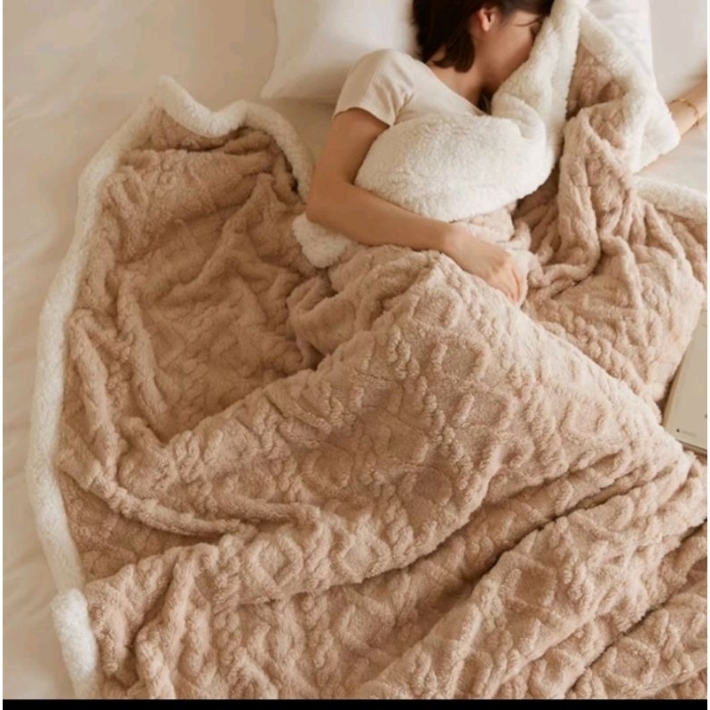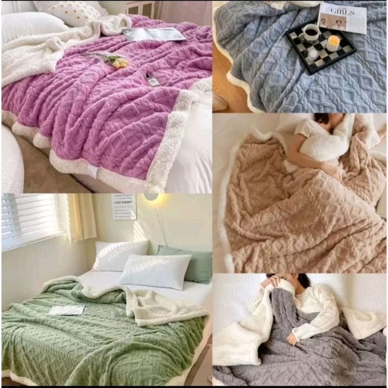 Selimut Bulu Domba 180 X200 Dua Sisi Tebal Super Soft Penthouse Selimut Lembut Dan Halus