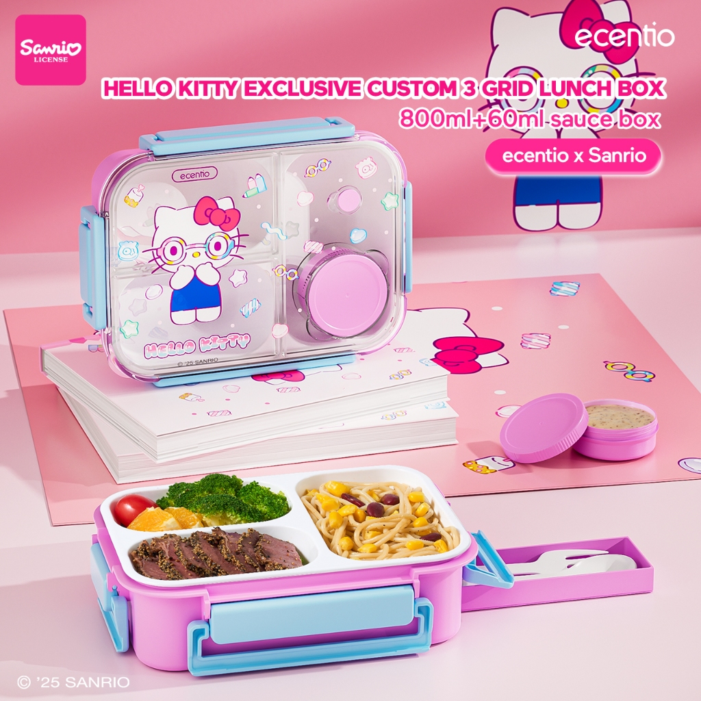 ecentio 800ml 3 Gird Kotak makan Set anti tumpah lunch box anak lucu kotak bekal anak perempuan free sendok BPA FREE tem