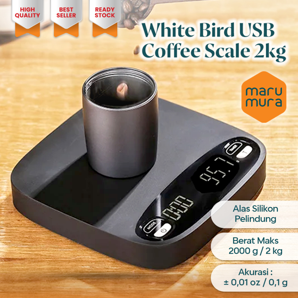 Marumura White Bird USB Digital Premium Coffee Scale with Timer | Timbangan Kopi Digital Waterproof