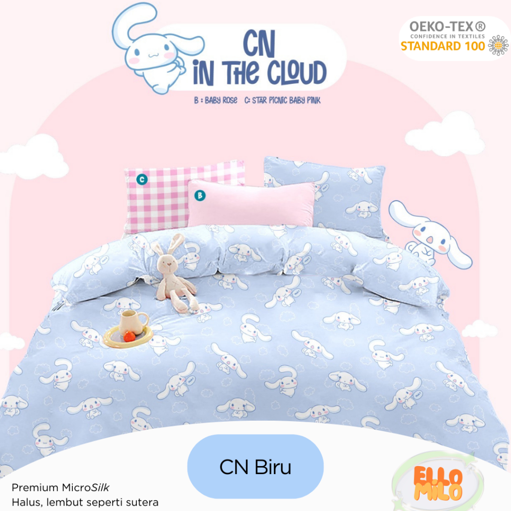 Sprei Set Cinnamoroll | Katun Microsilk | 120X200 140X200 160X200 180X200 | Sprei Korea