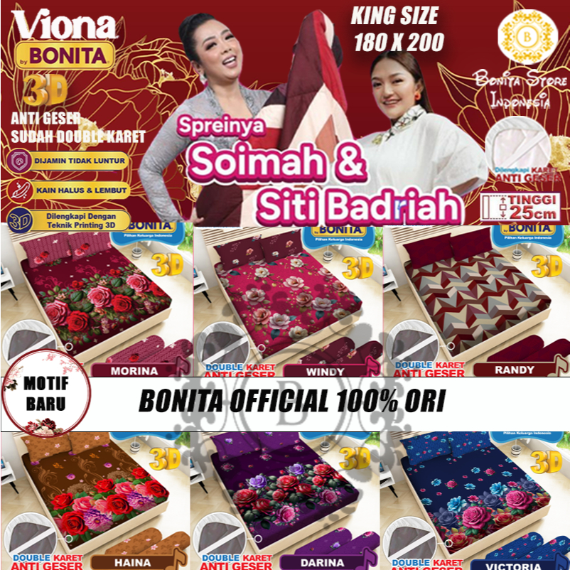 Sprei Bonita Viona King Size 180X200 T25 6 Kaki – Micotex Original Set Bantal 2 Official