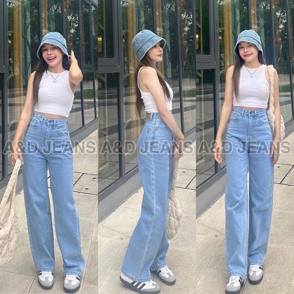 Highwaits Loose Adjustable Baggy Under Age Jeans Celana Jeans Wanita Kekinian Jeans Loose Straight