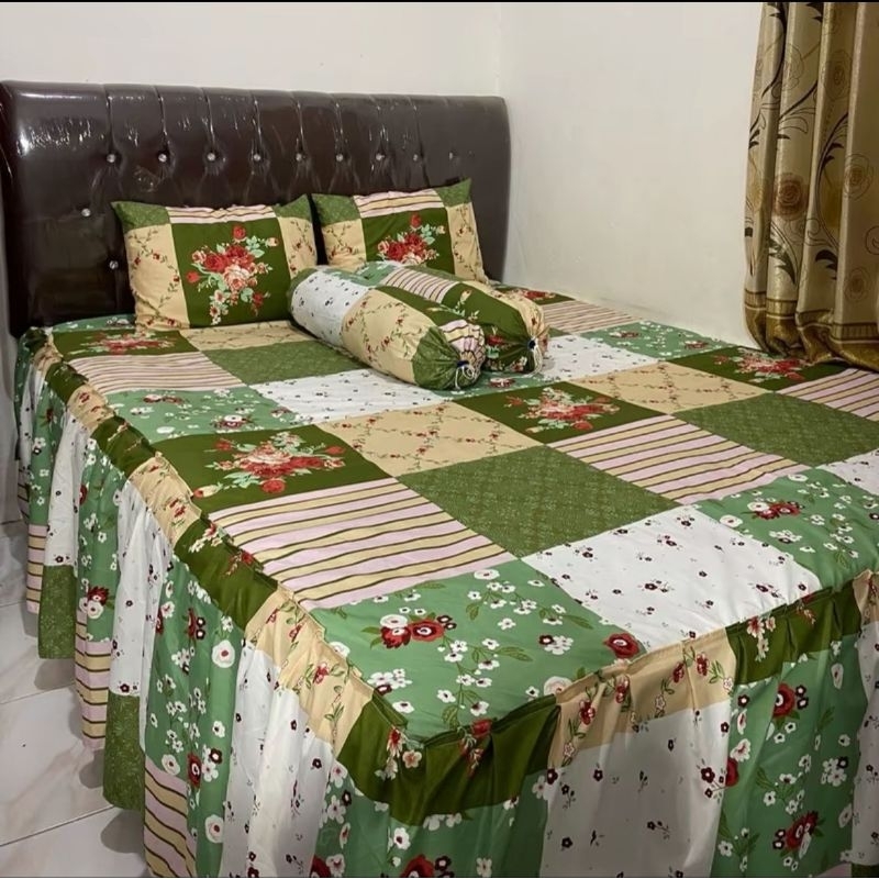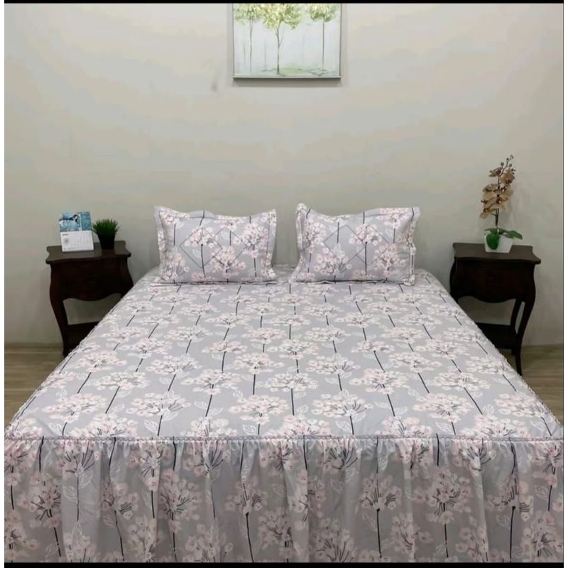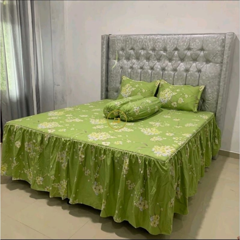 Sprei Rumbai/Rempel Motip Bunga Sprei Rumbai Bahan Katun Halus Microteks Sprei Rumbai Free Bantal2 + Guling2