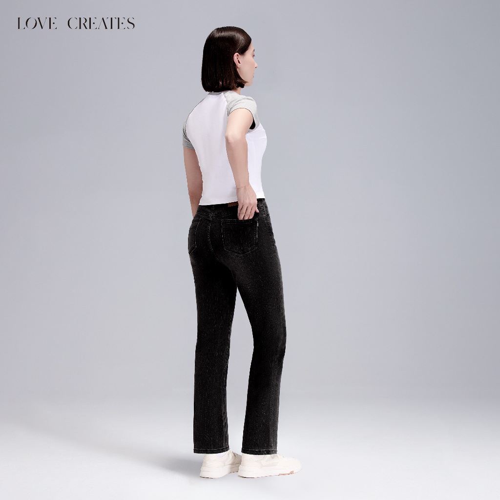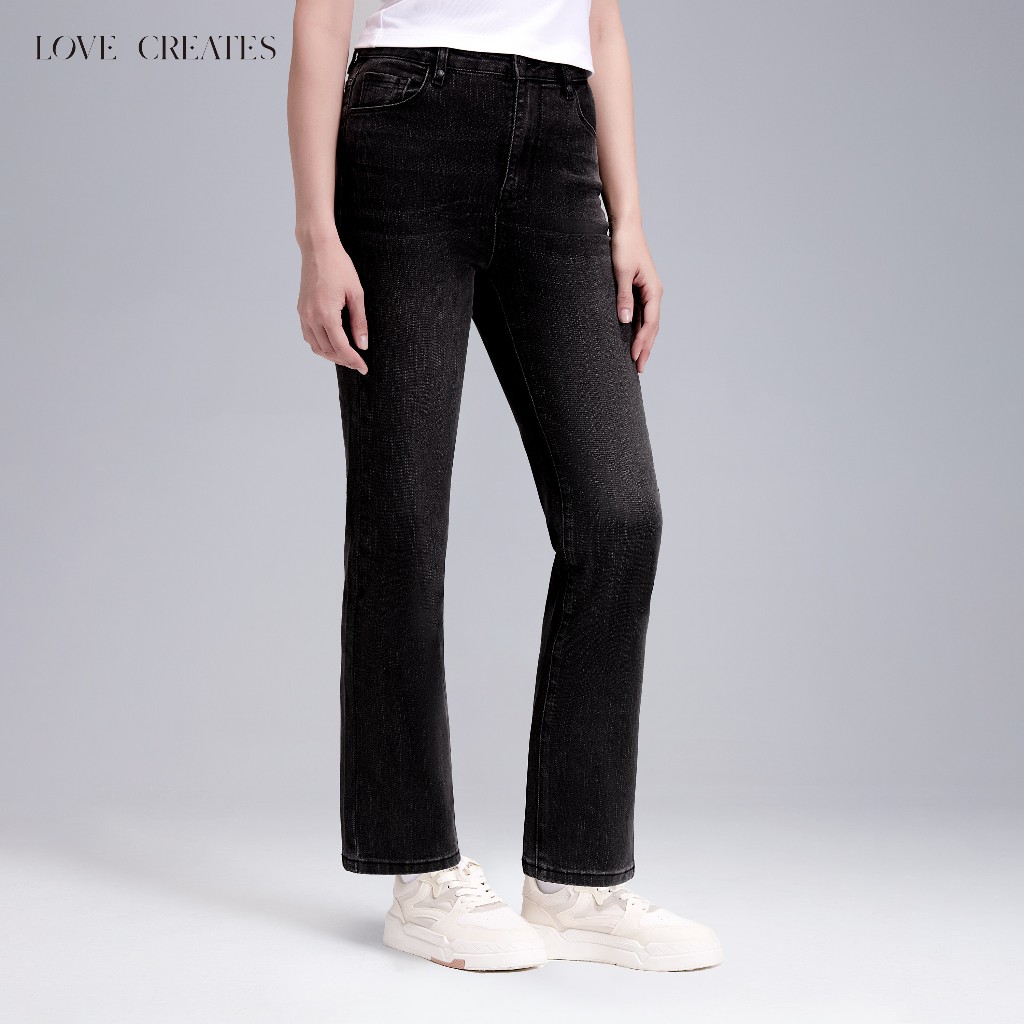 Love Creates Celana Jeans Wanita Celana Jeans Hitam Jeans Lurus Pinggang Tinggi (NZK08)